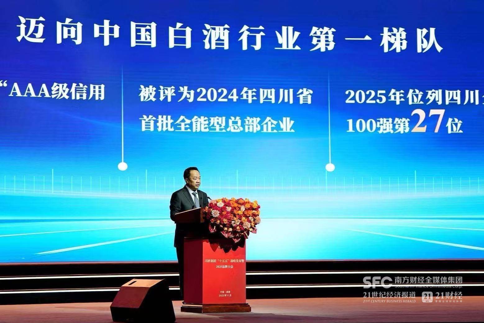 11月18日下午,川酒集团“十五五”战略发布暨2025品牌大会上,川酒集团党委书记、董事长曹勇透露了“十五五”目标:集团力争到2030年实现营收450亿元、利税30亿元,迈入中国白酒第一方阵。